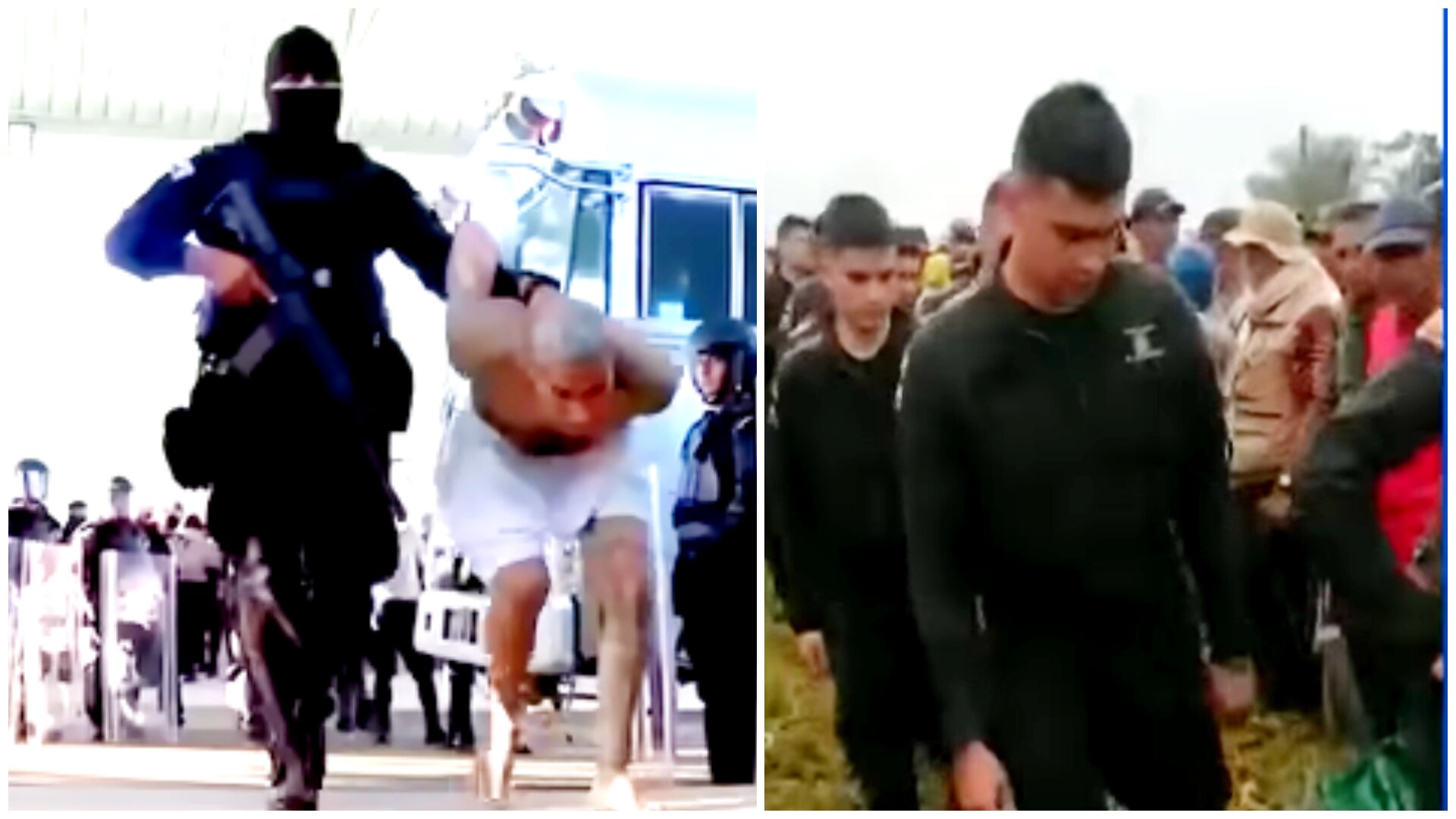 Imagen de portada: Izda.: Pandillero salvadoreño sometido a la justicia. Dcha.: Fila de policías colombianos secuestrados por campesinos. (Toma de pantalla: YouTube/Hamilton Barcenas TV/Noticias Caracol).